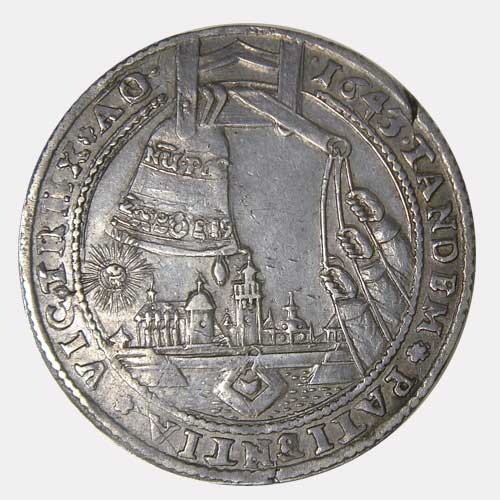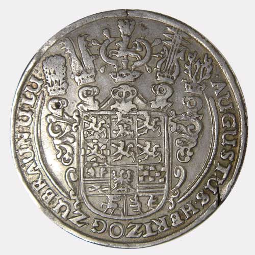 Вольфенбюттеля на задньому плані. Круговий напис разом з датою монети